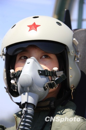 中国空军首批歼击机女飞行员更换新型飞行装具。中新社发 张雷 摄