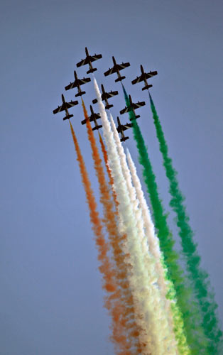 图为阅兵式上的特技飞行队。