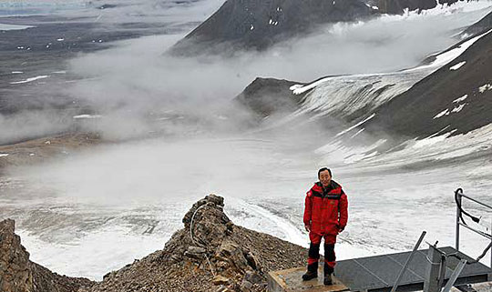 联合国秘书长潘基文在挪威最北部靠近北极的斯瓦尔巴德群岛上的气象站参观。