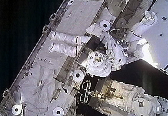 图:美“发现号”宇航员开走太空步(2)