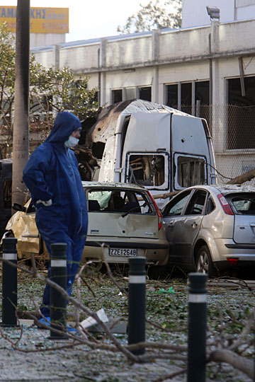 图:希腊雅典一证交所门前发生爆炸(2)