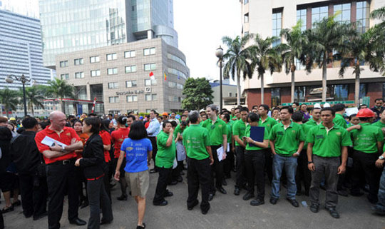 图为在印度尼西亚首都雅加达,当地居民在地震后聚集在街道上。