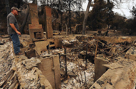 图为洛杉矶附近大火肆虐过后的场景。