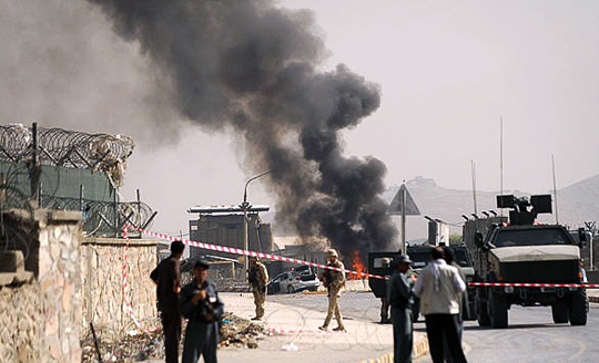 图:阿富汗首都军用机场遭袭 2死10伤(2)