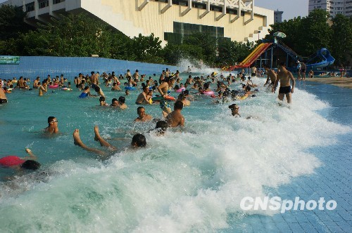 图为人们来到游泳池避暑。中新社发 陈 宏 摄