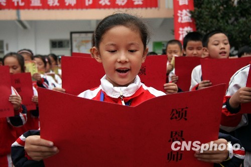 图:山东枣庄千名小学生“颂恩师”(2)
