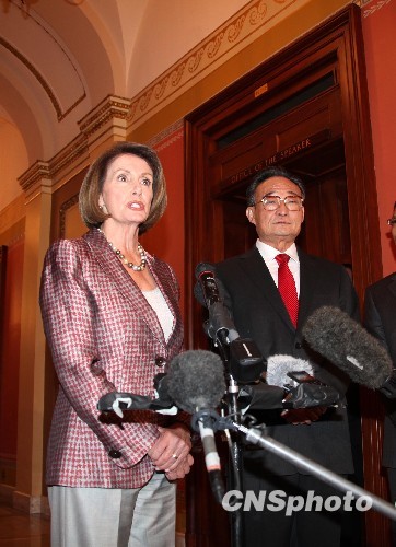 当地时间9月9日,正在美国进行正式友好访问的中国全国人大常委会委员长吴邦国在国会大厦与美国众议长佩洛西举行会谈。