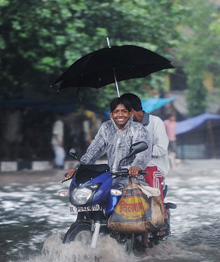 图:大雨袭击 印度首都交通瘫痪(2)