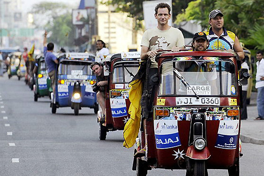 近日,斯里兰卡首都科伦坡举行“嘟嘟车”环游斯里兰卡竞赛,历时3天的活动于9月14日结束,20余名游客驾驶“嘟嘟车”参与了此次活动,来自世界各地的游客也参与其中。