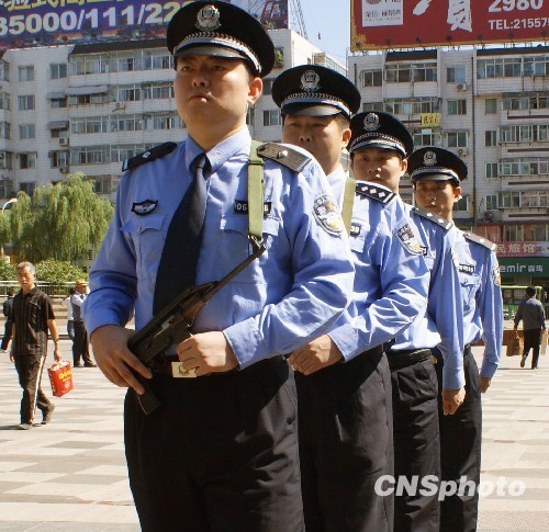 图为北京“北大门”河北承德街头武装巡逻的公安民警。中新社发 翟羽佳 摄