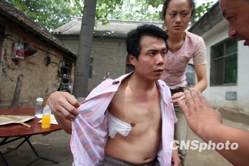 图为7月,“开胸验肺”后的张海超。中新社发 王中举 摄
