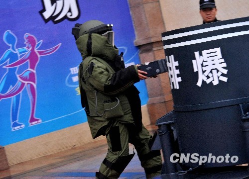 9月18日下午,河南郑州国庆安保“2009卫士5号”反恐拉动大型演习在郑州市郑东新区冒雨举行。当日秋雨沥沥,郑州市公安局为全面做好省会60周年国庆安保反恐工作,着眼当前主要恐怖威胁和恐怖袭击手段的变化,结合“四位一体”反恐实战体制建设任务,进一步检验和提高省会反恐应急能力,而专门在市区组织的一次应对小群多路恐怖活动的实地实景实战对抗反恐拉动演习。整个演习突出检验性、对抗性和联动性。冒雨参加此次国庆安保反恐拉动演习的有武警、特警、交巡警、刑警以及消防、卫生等相关单位和人员共计2500多人。中新社发 刘书亭 摄