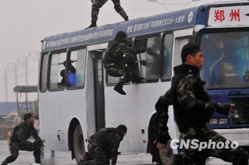 组图:郑州警方雨中举行国庆安保反恐演习(2)