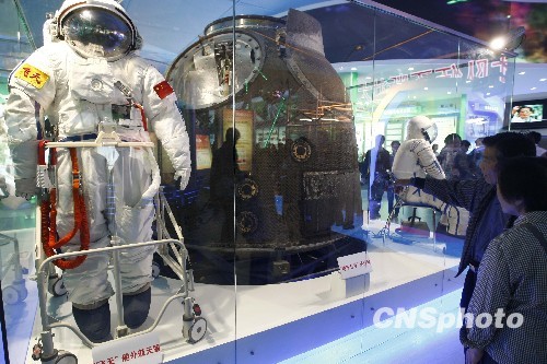 神州七号返回舱及航天服亮相新中国60周年成就展