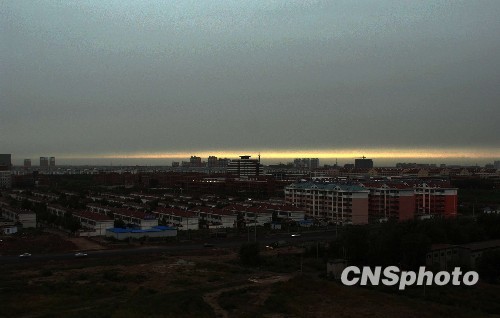 9月20日,山东滨州上空出现一道美丽的天际分界线,这道划破天空的分界线持续约5分钟后消失。中新社发 张滨 摄