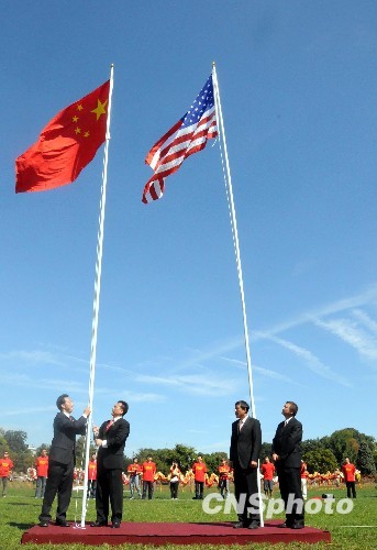 组图:白宫外公共草坪首次升起五星红旗(3)