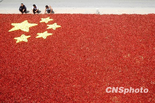组图:农民用玉米红辣椒拼国旗迎国庆(3)