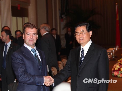 图:胡锦涛会见俄罗斯总统梅德韦杰夫