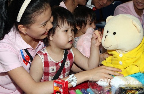 60位佳丽来到深圳福利院慰问孤儿。中新社发 钱兴强 摄