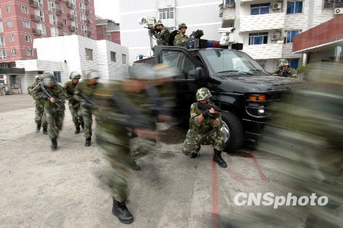 9月27日,浙江省温州市公安边防支队举行代号为“猎狐”的国庆安保实战反恐演练,提高部队处置暴力恐怖事件的快速反应能力。