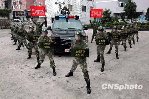 温州边防特警队员进行防暴队形演练。中新社发 吴水斌 摄