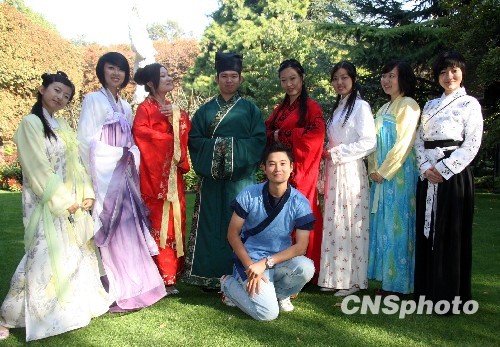 当地时间9月27日,来自法国、英国、德国和荷兰的20多名中国留学生会聚巴黎卢森堡公园,换上崭新的汉服,然后列队向巴黎圣母院、埃菲尔铁塔、卢浮宫和香榭丽舍大道等法国著名景点出发。他们以汉服巡游这种特殊方式宣传中国文化,迎接新中国六十华诞的到来。