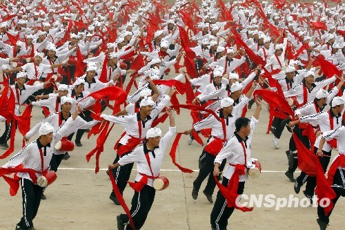 参加国庆60周年庆典群众游行方阵北京举行合练。中新社发 郑雄增 摄