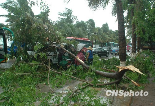 9月29日,台风“凯萨娜”携强风袭三亚。图为强风吹断了路边的大树枝。中新社发 尹海明 摄