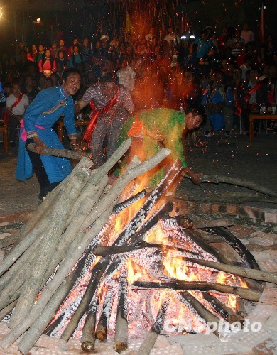 图为国庆将近,当地的民众举行了“迁新居·迎国庆”联欢晚会,隆重庆祝新中国60华诞。中新社发 霍潺 摄