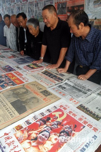 9月29日,由山东省郯城县退休老人丁思德举办的“庆国庆60周年藏品展”在县老年大学开幕,共展出10月1日这天出版的各种报纸270余份。中新社发 房德华 摄
