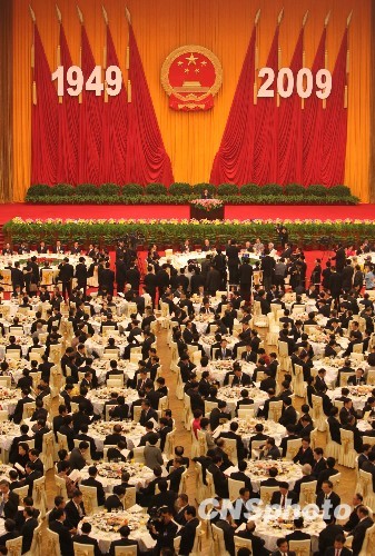 9月30日晚,庆祝中华人民共和国成立60周年招待会在北京人民大会堂举行。中新社发 张宇 摄