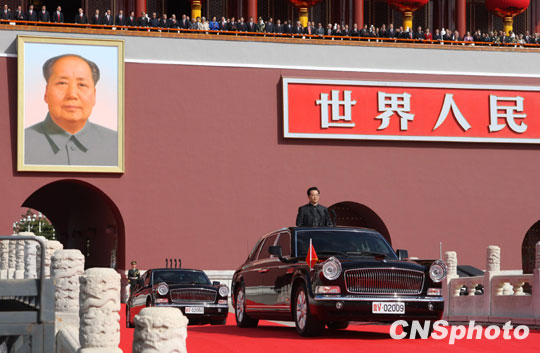 国庆阅兵:胡锦涛乘红旗轿车检阅(2)