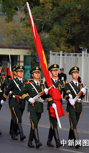 中新网乌鲁木齐10月1日电(记者 刘新)新疆维吾尔自治区今天上午北京时间8时06分在乌鲁木齐人民广场举行庆祝新中国成立60周年升旗仪式。来自党、政、军、大中专院校学生、中小学生、民主党派、工商联、宗教界、区市级劳模等各方面代表近5000人参加此次升旗活动。