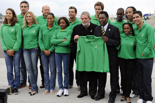 图为巴西总统卢拉与球王贝利在哥本哈根为里约申奥助阵。