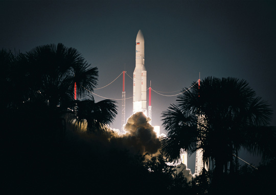 格林尼治时间10月1日21时59分(北京时间10月2日5时59分),欧洲阿丽亚娜5-ECA型火箭携带两颗通信卫星,从法属圭亚那库鲁航天发射中心发射升空。