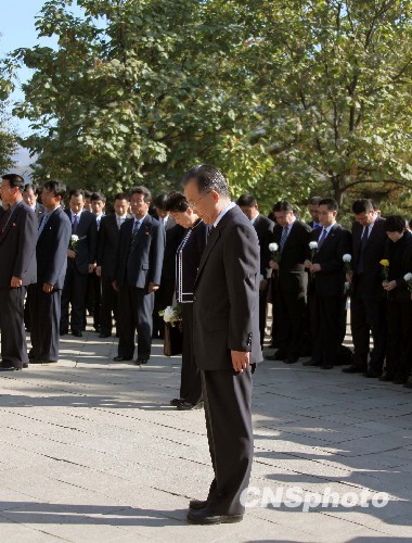 10月5日,正在朝鲜访问的中共中央政治局常委、国务院总理温家宝前往朝鲜平安南道桧仓郡,凭吊位于这里的中国人民志愿军烈士陵园。这里是朝鲜规模最大、保存最完整的志愿军烈士陵园,包括毛岸英在内的134名志愿军烈士长眠于此。中新社发 周兆军 摄