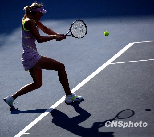图为莎拉波娃在比赛中。中新社发 刘震 摄