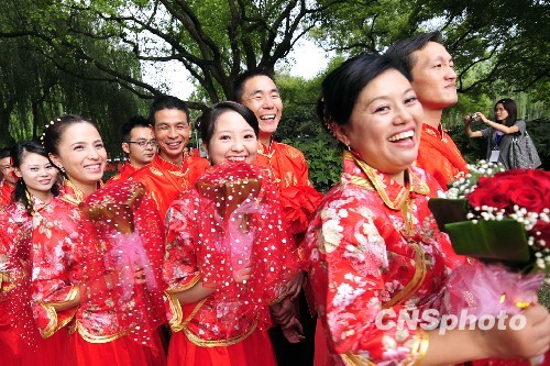 百对中外新人西湖边喜结连理。中新社发 李忠 摄