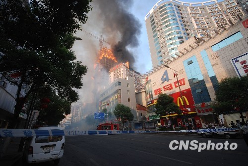 10月7日下午16时25分左右,湖南省株洲市建设南路一栋高30余层,已经封顶并正在装修的“环球国际”大楼楼顶突然起火。火势借助风势迅速扩大,10多分钟后,整栋大楼燃烧,并秧及周边的江海房产大厦,附近几百米内的楼房楼顶多处因飞溅的火花产生小火灾,均被迅速赶赴现场的消防队扑灭。大楼明火于起火半小时后被扑灭,截止目前,火灾现场仍在处理中。火灾未造成市民死伤,具体情况还在进一步了解中。