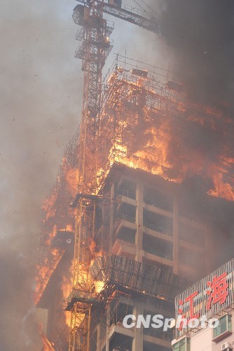 图:湖南株洲30层在建高楼遭火灾(2)