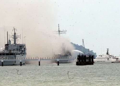 图:马来西亚最大军舰被烧毁(6)