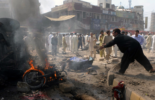 10月9日,巴基斯坦白沙瓦地区一市场发生自杀式汽车炸弹袭击,造成至少42人死亡,自杀式汽车炸弹袭击还造成伯尔街购物区百余人被炸伤。