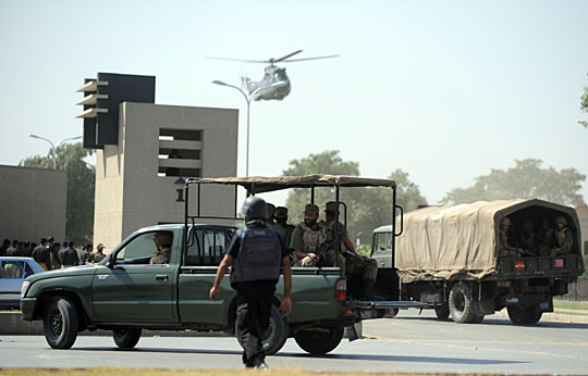 图为巴基斯坦安保部队与武装分子进行交火。