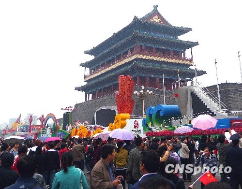 当日是彩车展示最后一天,彩车夜景开放至22时,夜景开放结束后,彩车将撤场。中新社发 玉龙 摄