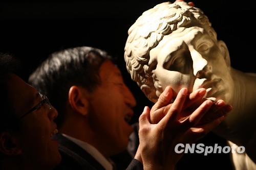 10月12日,来自北京、天津的视障人士在北京中华世纪坛触摸展出卢浮宫雕塑共度第26届国际盲人日。《触·觉——从卢浮宫到世纪坛》展览是中国内地首次为视觉残障人士举办的雕塑艺术展,向残疾人免费开放,所有参观者可以用触摸方式“观”展,展厅有盲道,立有盲人说明牌,有志愿者人工讲解和语音导览。同时,无视障观众可用无视触摸和有视触摸的方式,获取对艺术品观赏的不同体验。展览共展出公元前2世纪到19世纪西方经典雕塑的复制品和中国当代艺术品23件。中新社发 杜洋 摄