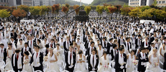 10月14日,来自世界各地约4万人在韩国汉城以南的日月潭大学参加集体婚礼,并成为韩国10年来规模最大的集体婚礼。