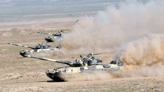 10月16日,独联体集体安全条约组织快速反应部队第三阶段军事演习在哈萨克斯坦南部江布尔州的一个军用训练场举行。