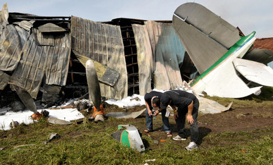 一架DC-3飞机在马尼拉南部居民区坠毁(4)