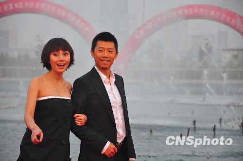 10月17日下午,第18届金鸡百花电影节“星光大道”——明星走红地毯仪式在江西南昌举行。影帝夏雨和著名演员袁泉携手步入红地毯,引发观众欢呼。中新社发 段长征 摄