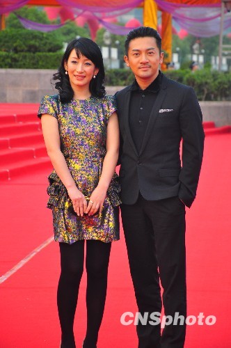 10月17日下午,第18届金鸡百花电影节“星光大道”——明星走红地毯仪式在江西南昌举行。台湾著名演员苏有朋携大陆著名演员秦海璐步入红地毯,与观众见面。中新社发 段长征 摄